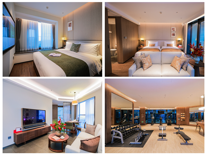 海口鸿园酒店公寓地处海南自贸港江东新区的核心区域,商务与休闲资源丰富。周边汇聚了众多世界500强企业总部、高端购物场所和历史文化景点。住客步行700米即可抵达海滨,享受海风拂面的惬意时光。驱车13公里便可探访海口著名的骑楼老街,感受百年历史的沉淀与魅力,或前往全球闻名的cdf免税购物中心,体验奢华购物的乐趣。 酒店拥有261间精致奢华的客房,以宋代美学为基调,结合现代设计手法,展现出简约而不失品味的居住空间。每间客房均配备了现代化设施、宽敞的独立阳台、设施齐备的厨房、高端家电和舒适的淋浴空间,让客人尽享现代生活的便利与奢华。此外,公寓内设有丰富的休闲娱乐设施,包括室外泳池、健身房、瑜伽室、影音室、儿童游乐室等,旨在为住客提供全方位的能量焕活体验。